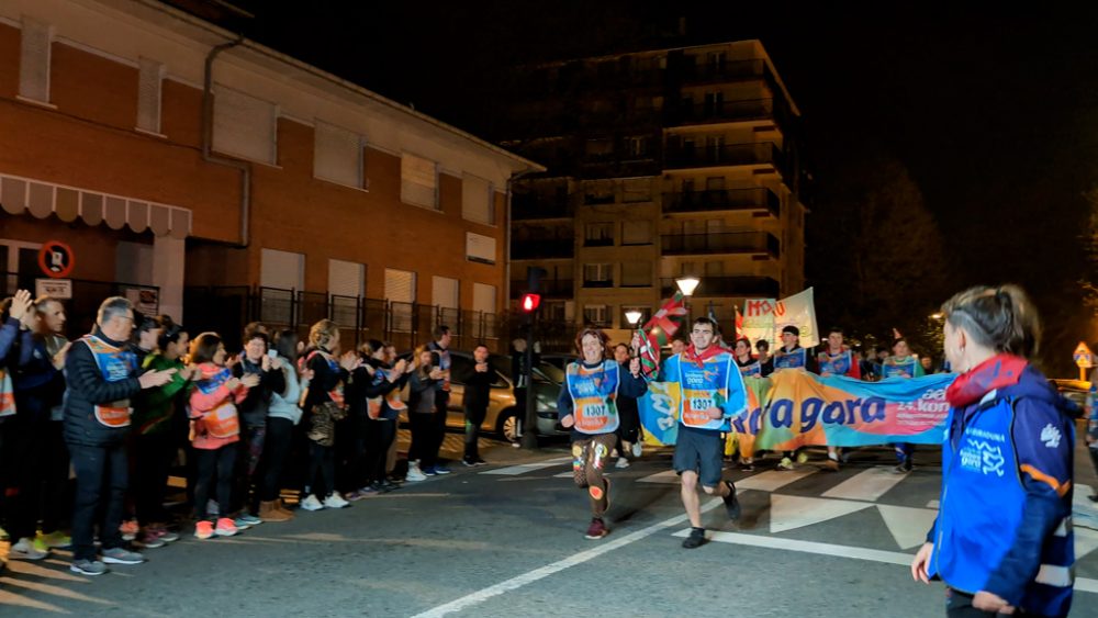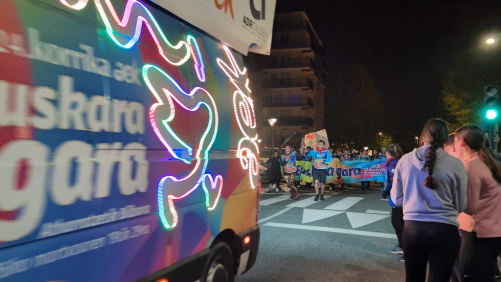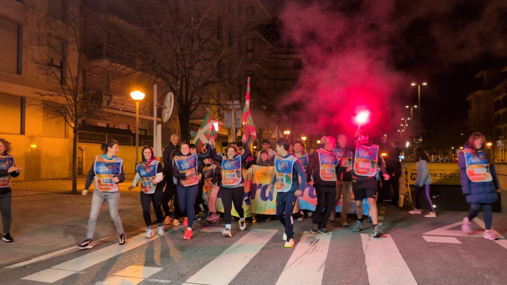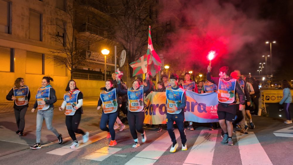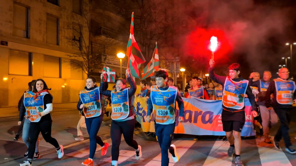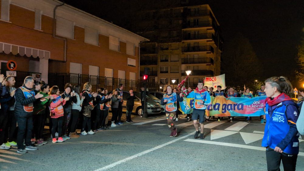 Ibilbideak ez du etenik izan hiriaren erdialdean. 04:31n Larreaundi-Olaberria auzo elkarteak hartu du lekukoa , eta handik gutxira Mosku euskalduna aldarrikatu dute Sortu, Ernai eta Loratzen taldeek. Dunboa eta Toki Alai ikastetxeek (04:39) eta Laboral Kutxako kideek (04:43) ere bat egin dute lasterketarekin.
