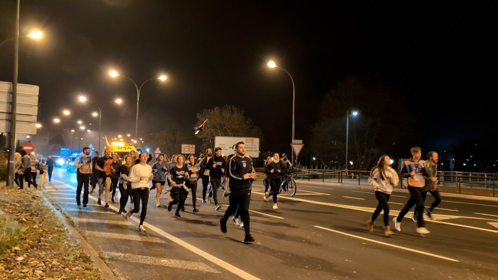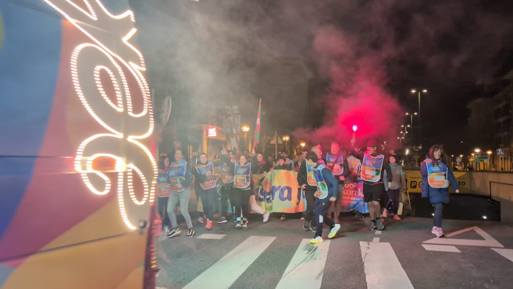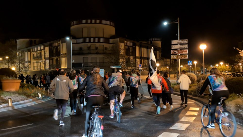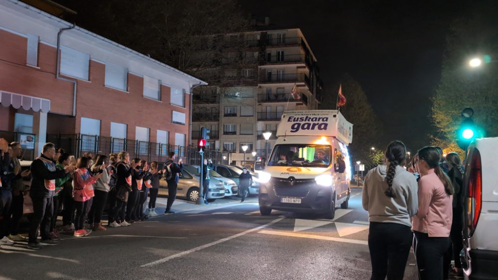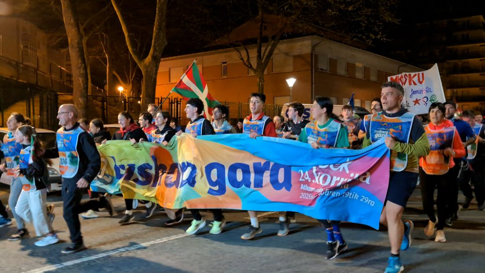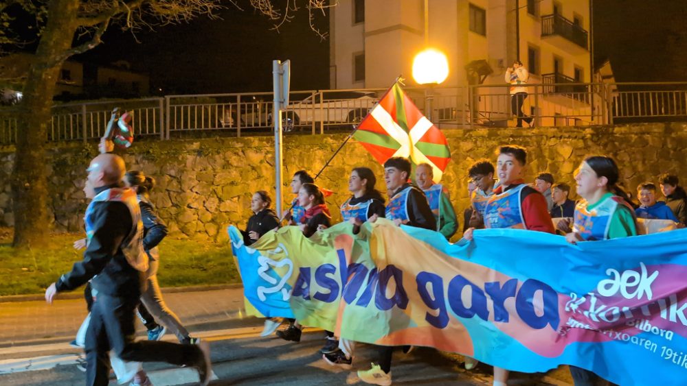 Ibilbideak ez du etenik izan hiriaren erdialdean. 04:31n Larreaundi-Olaberria auzo elkarteak hartu du lekukoa , eta handik gutxira Mosku euskalduna aldarrikatu dute Sortu, Ernai eta Loratzen taldeek. Dunboa eta Toki Alai ikastetxeek (04:39) eta Laboral Kutxako kideek (04:43) ere bat egin dute lasterketarekin.