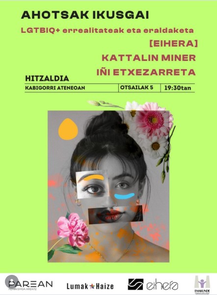 Parean eta Lumak Haize elkarteek elkarlanean antolatutako saio honetan, Eihera kooperatibako Kattalin Miner eta Iñi Etxezarreta izango dira hizlariak. Saioaren bidez, LGTBIQ+ kolektiboak gaur egun bizi dituen errealitate desberdinak ikusarazi nahi dira, gizarte-eraldaketarako gogoeta sustatzeko helburuarekin.