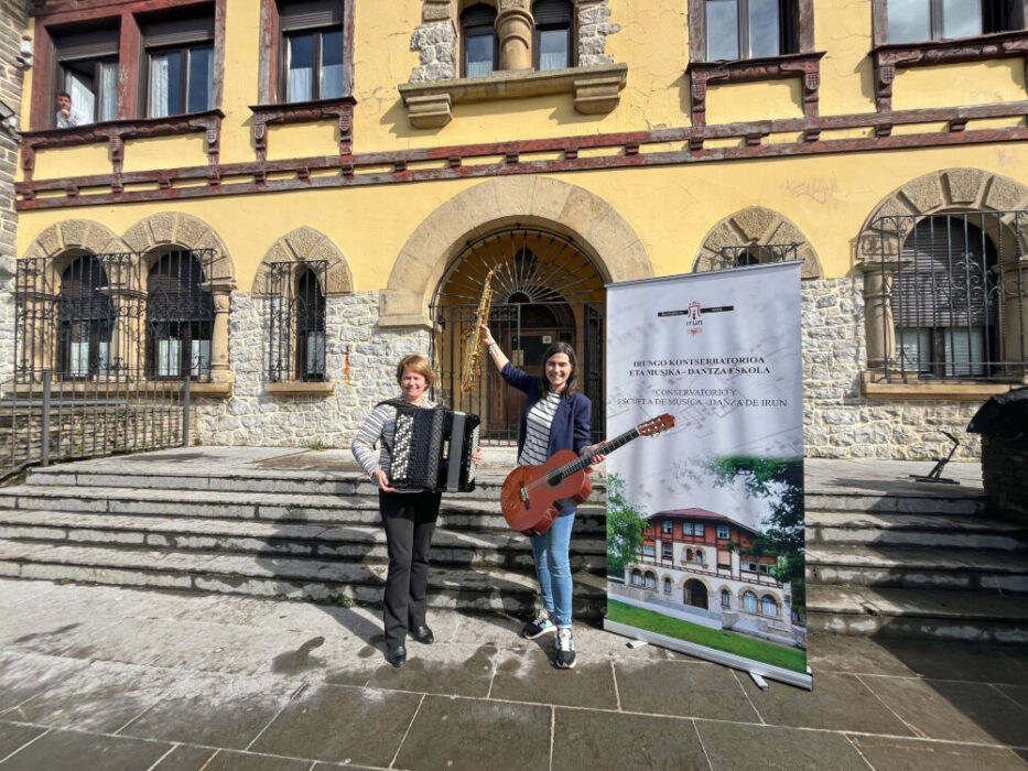 Nuria Alzaga Irungo Udaleko Hezkuntza ordezkariak eta Amaya Liceaga Irungo Udal Kontserbatorioko eta Musika eta Dantza Eskolako zuzendariak Per Tutti musika-astearen II. edizioa aurkezteko. Datorren astelehenean, hilak 18 hasiko da eta ia astebetez luzatuko da, hau da, martxoaren 23ra arte.