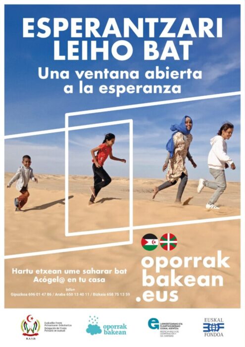 Oporrak Bakean programak 8 eta 9 urte bitarteko haur sahararrak udan, bi hilabetez, euskal familiekin bizi daitezen sustatzen du.